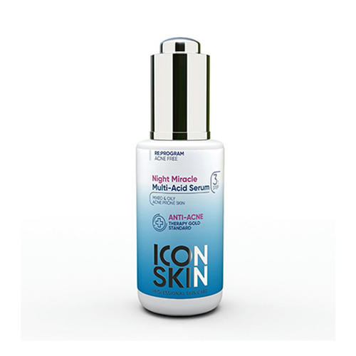 Ночная сыворотка сочетает свойства кислот различных групп (AHA+PHA+BHA), деликатно отшелушивает верхний ороговевший слой эпидермиса, очищает поры и выравнивает его рельеф. Средство направлено на обновление кожи, борьбу с акне и нормализацию процессов кератинизации. Продукт регулирует себум, борется с бактериями, уменьшает существующие воспаления, предотвращает повторные высыпания, запускает процесс регенерации, осветляет пятна постакне, стимулирует процесс восстановления клеток. Не содержит силиконов, парабенов, красителей. Активные ингредиенты: лактобионовая кислота, кипрея канадского экстракт, глюконолактон, бузины экстракт, ниацинамид, солодки экстракт, азелоглицин, миндальная кислота, салициловая кислота, чайного дерева эфирное масло, эвкалипта эфирное масло, лимона эфирное масло, бисаболол, аминокислоты, аллантоин, гиалуроновая кислота, витамин Е.