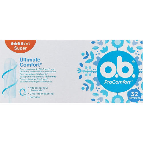 Начало критических дней – не повод отказываться от активного образа жизни. С тампонами от o.b. вам не придется отменять занятие в бассейне, откладывать поездку на море и отменять спортивную тренировку. Комплект из 32-х тампонов o.b. надежно защитит от протеканий и позволит вам быть активной в течение целого дня. Тампоны o.b. Pro Comfort Super имеют нежное, шелковистое покрытие SilkTouch для быстрого введения и ощущения комфорта. Особая технология спиралевидных желобков и впитывающее волокно позволят не беспокоится о чистоте и обеспечат надежную защиту. Изделия от o.b. помогут вам носить любую, даже самую облегающую одежду и при этом чувствовать себя на все 100%.