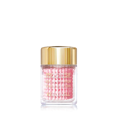 Микрокапсулы в геле-суспензии: прозрачный гель + розовый крем в форме шариков снимает симптомы усталости (круги и мешки под глазами).
