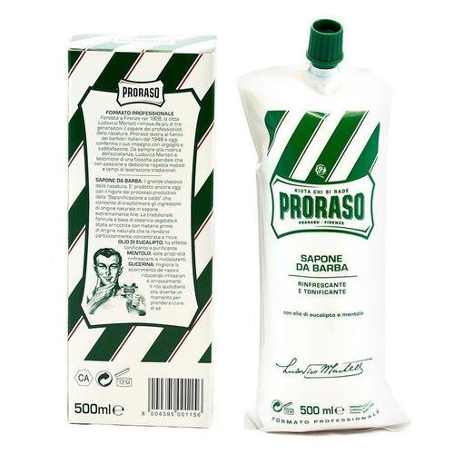 Proraso Refreshing Shaving Cream Tube – крем с густой текстурой образует мягкую насыщенную пену, обеспечивая превосходно гладкое бритьё. Средство содержит масла ментола и эвкалипта, которые тонизируют и приятно охлаждают кожу. Масло эвкалипта имеет тонизирующий и очищающий эффект. Ментол известен своими восстанавливающими и очищающими свойствами. Глицерин обеспечивает гладкое бритье, уменьшает раздражение и покраснение.