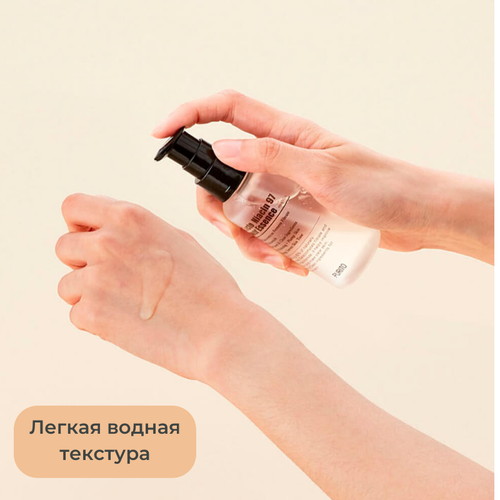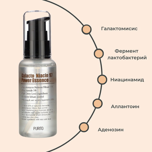 Эссенция с фрементированным фильтром галактомисиса (92% от состава) значительно ускоряет обменные процессы, разглаживает кожный рельеф и создает барьер против вредного УФ-излучения.