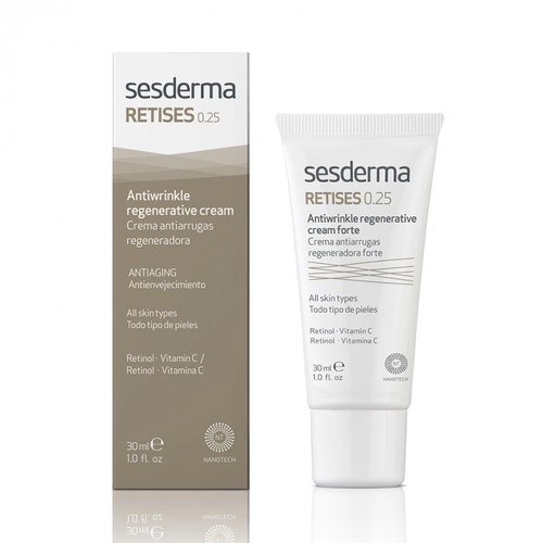 Ночной крем Retises 0,25 содержит прекрасную концентрацию чистого 0,25% ретинола и 1% аскорбил глюкозида (витамин C) для борьбы с симптомами старения кожи. Чистый ретинол – это самая активная форма витамина A, одного из самых эффективных омолаживающих активных ингредиентов, необходимых для увеличения содержания коллагена и естественной регенерации клеток эпидермиса. Обладает эксфолиирующим действием, осветляет пигментные пятна. Восстанавливает и защищает от повреждений, которые претерпевает наша кожа с течением времени. Антиоксидантное действие витамина С придает коже сияние и выравнивает тон. В состав входят активные ингредиенты, которые дополняют друг-друга: пальмитоил олигопептид стимулирует синтез коллагена и гликозаминогликанов, укрепляя кожу, повышая эластичность, которая снижается с возрастом; антартицин увеличивает рост и сцепление фибробластов, разглаживая и увлажняя кожу; босвеллиевые кислоты обеспечивают успокаивающее действие, устраняют отечность.