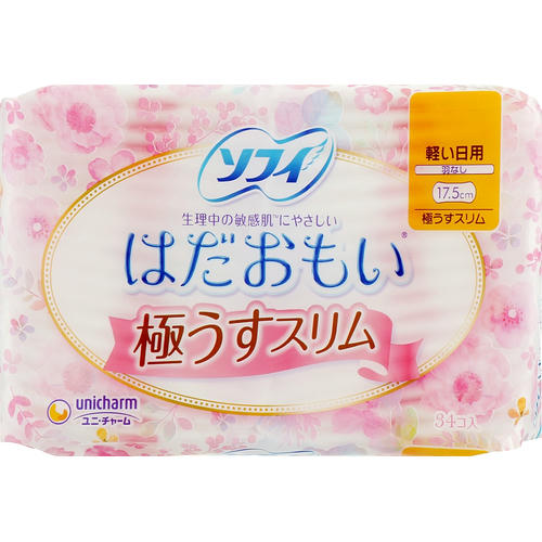 Прокладки от Unicharm в 2 раза тоньше обычных, поэтому совсем не доставляют неудобств. Средство рассчитано на применение при среднем уровне выделений и имеет забавный дизайн с сердечками. Мягкое покрытие прокладок нежно касается кожи, не вызывая раздражений.