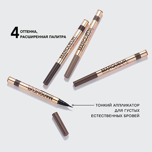 Маркер Marqueur Superb от Vivienne Sabo для насыщенных густых бровей. Он рисует естественные линии благодаря тонкому фетровому аппликатору – вы легко заполните пустоты между волосками и создадите эффект микроблейдинга. Невесомая текстура быстро высыхает, насыщенный цвет стойко держится в течение всего дня, элегантный дизайн корпуса влюбляет в себя с первого взгляда. Marqueur Superb доступен в четырех натуральных оттенках: коричневом холодном, светло-коричневом холодном, светло-коричневом для блондинок, темно-коричневом для брюнеток. Веганская формула, средство не тестируется на животных.